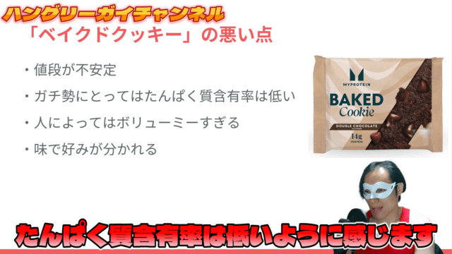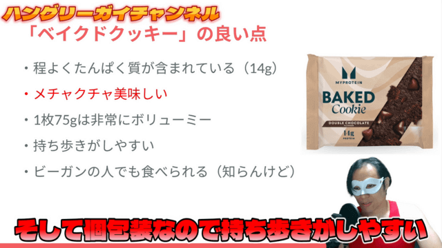 今回の「ベイクドクッキー」について簡単にまとめると、非常にクオリティの高い味を楽しみながら栄養補給ができる食品であり、食事やおやつとして活躍が見込める商品であると言えます!
