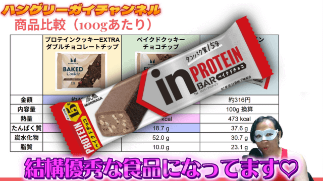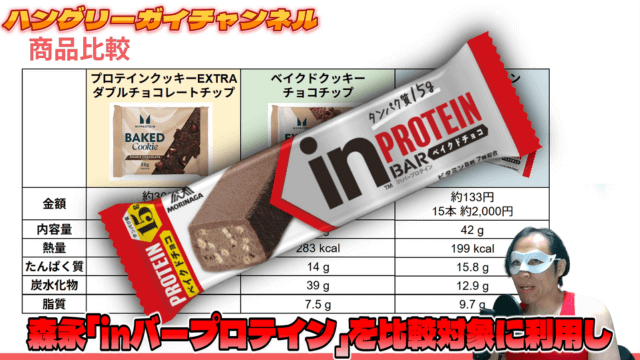 ちなみに今回のレビューの趣旨とは違いますが、比較に使用している森永「inバープロテイン」はそもそもかなり優秀なスペックのプロテインバーであり、気軽に試しやすい商品であるため、食べたことが無いという方はコチラも合わせてチェックして頂くことをおすすめします!