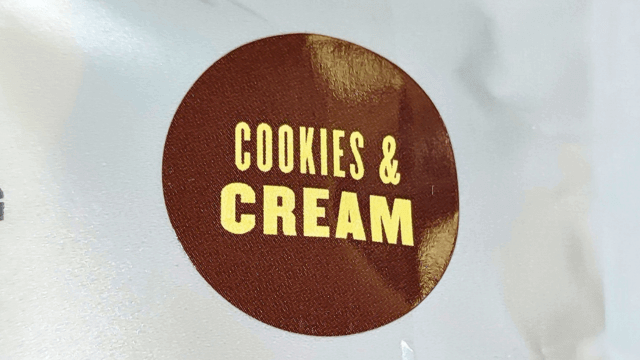 今回レビューするプロテインは「クッキーアンドクリーム」味で、そもそも「クッキーアンドクリーム」とはバニラアイスに砕いたココアクッキーを混ぜ込んだアイスクリームのフレーバーのことであり、海外のプロテインにおいては超定番とも言えるフレーバーになります。